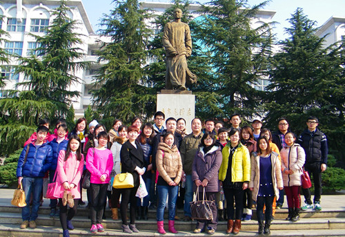 一师坐落城南郊,地处书院路;前有岳麓山,后倚妙高峰;门前横湘江,钟灵毓秀绝佳地,不愧为喧嚣城市中的理想读书地,从校门口眺望,暖阳下的的毛泽东青年纪念馆好似一本厚重的书籍,开启的扉页默默诉说着青年毛泽东忧国忧民、立志求学的高远情怀。踏进纪念馆大门,毛泽东与萧子升等胸怀天下、志在救国的一群热血青年的万丈豪情迎面扑来,主席当年泅水横渡的身影依稀可见,那时的他们何等意气风发,酣畅淋漓。医学研究生们仿佛穿越回到那激情澎湃的年代,主席与杨开慧伉俪情深,不顾小家投身革命的无畏情怀跃然在目。