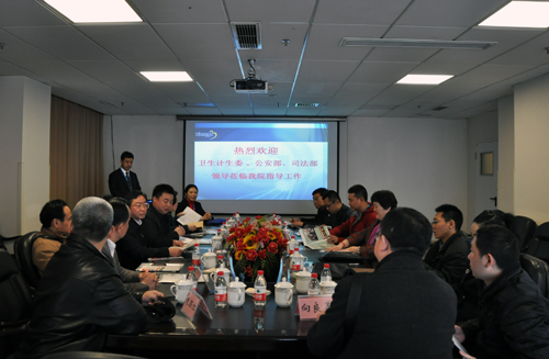 3月11日,由司法部基层司副巡视员李冰任组长,国家卫生计生委、公安部、司法部组成的督导组来到湘雅三医院,就维护医疗秩序打击涉医违法犯罪开展专项督导检查。湖南省卫生厅、公安厅、司法厅等相关部门负责人等陪同检查。