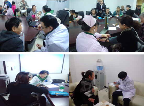 活动由我院第一党支部以及中国光大银行长房时代城携手组织,心内科涂珊医生、消化内科张德才医生、重症监护病房刘作良医生以及内分泌及肾内科的两名护士,医护人员热情、细致、耐心地为社区居民们量血压,进行心肺听诊,宣讲高血压、糖尿病、心脏病等健康保健知识,为他们解答一些日常生活中遇到的健康问题,并为居民们发放了许多家庭常用药物以及常见疾病的健康宣传资料,如糖尿病、高血压、冠心病、骨质疏松、近视等。在发现居民有高血压高症状后,大家都会仔细询问他们疾病史、用药史,并鼓励他们每天坚持吃降压药、保持良好的心态、注意适当锻炼、清淡饮食。