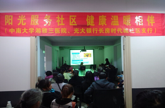 11月15日,湘雅三医院与光大银行在长房时代城社区开展了 “阳光服务社区,健康温暖相伴”的主题活动。