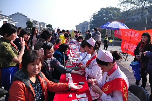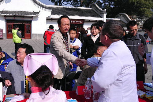 一大早,活动现场就挤满了前来咨询就诊的人群,有的还排起了小长队,心内科江凤林、老干科涂秋云、儿科陈志衡、神经内科雷立芳、妇产科肖松舒、消化内科邹惠芳、心理科袁秀洪和健康咨询专家徐果等医生迅速开始工作,详细询问就诊者病史,并将免费药物交到患者手中,耐心交待每种药物的用法及注意事项,嘱咐他们按时服药。